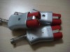 high temperature plug connector 2 connectors + earth 250Volts, 16A;25A. Ø6mm pins, distance between pins 19mm, nickeled steel.Working temperature up to 200°C, for short time up to 300°C.aluminiumbody with ceramic plughigh temperature silicone plug connector.